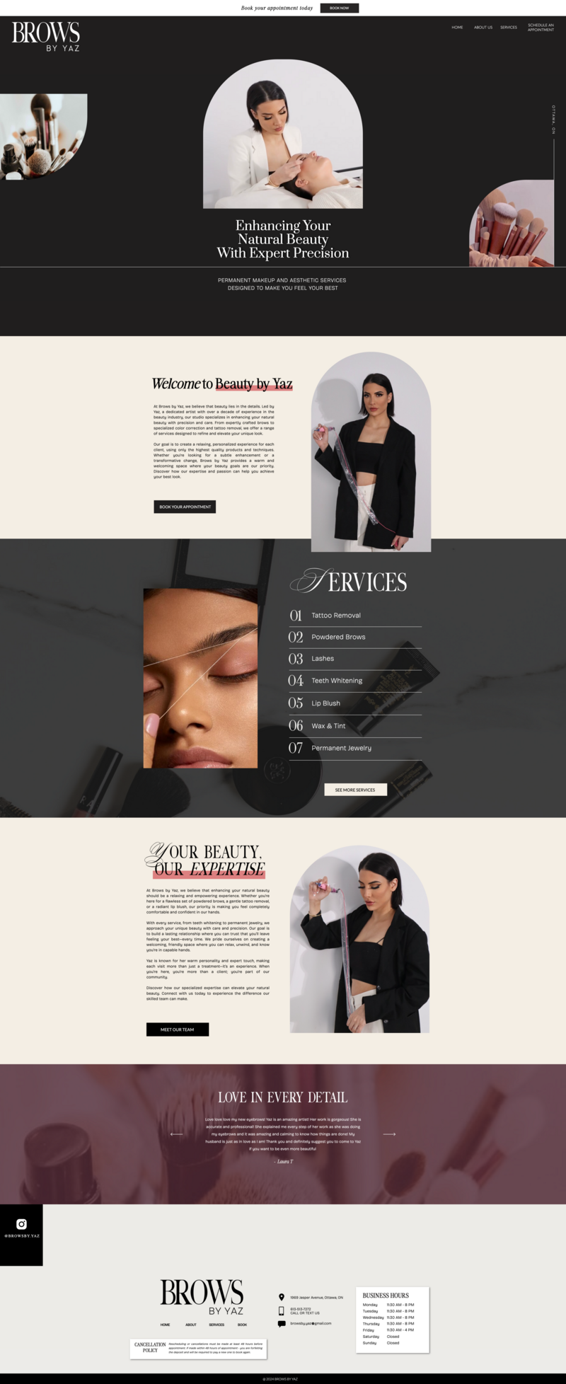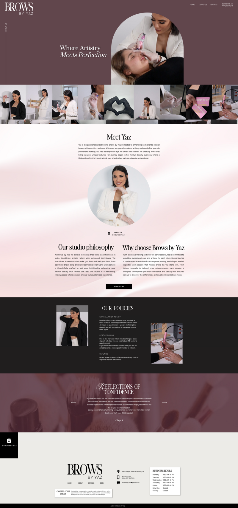 Beauty by Yaz is a refined beauty studio offering permanent makeup and aesthetic services designed to enhance natural features with precision and care. Yaz came to Celeste Creative ready to elevate her brand from behind-the-scenes artistry to a polished online presence that matched her reputation. With no website or branding in place, the goal was to create a luxe digital experience that felt both sophisticated and approachable—mirroring the elegance of her work and the warmth of her client care. The result: a sleek, conversion-ready website with a custom brand identity and seamless booking experience, built to support Yaz’s continued growth in the beauty industry.